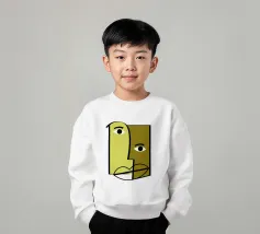 Un volto semplicistico e astratto è disegnato con linee nere decise e presenta una stella gialla sulla fronte. L'espressione è minimale, con piccoli punti per gli occhi e una linea retta per la bocca.