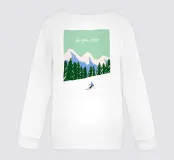 "Ski you later": un gioco di parole che unisce sport invernali e umorismo. L'illustrazione mostra uno sciatore su una pista bianca, incorniciata da abeti verde intenso e montagne color pastello. Un'immagine che cattura la leggerezza dello sci e allo stesso tempo evoca un sorriso. Perfetta per chi ama l'inverno, le montagne e il buon umore. Moderna, giocosa e un vero e proprio eye-catcher per la stagione invernale.
