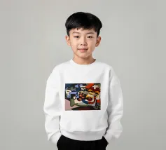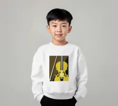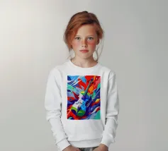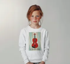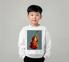 Un moderno dipinto astratto con forme geometriche che formano chitarre, violini e note musicali in una composizione audace e colorata. Lo sfondo strutturato e la disposizione dinamica evocano un senso di ritmo e di espressione artistica.