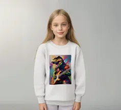 Questo vibrante T-Rex sfoggia un paio di eleganti occhiali da sole, che fondono la forza preistorica con la modernità. Un pezzo audace e divertente per gli amanti dei dinosauri e dell'arte tagliente.