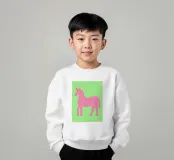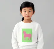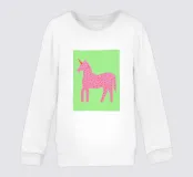 Questa giocosa illustrazione mostra un unicorno rosa con puntini su uno sfondo arancione e verde, perfetto per le camere dei bambini o per le decorazioni estive. La grafica dipinta a mano combina elementi fantasiosi con un design minimalista e crea un'atmosfera allegra che irradia gioia e creatività.