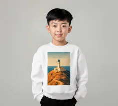 Design di viaggio minimalista dell'Inghilterra meridionale con le famose scogliere bianche (chalk cliffs) e il faro sulla costa inglese vicino a Dover. Tipico paesaggio di scogliere chiare.