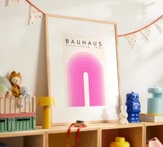 Questo poster con geometria astratta Bauhaus presenta linee pulite, forme decise e un gioco equilibrato di forme e spazi ispirato al movimento di design Bauhaus degli anni Venti. Cerchi, triangoli e rettangoli si intersecano con precisione, creando una composizione moderna e minimalista che affonda le sue radici nell'estetica funzionale. Il poster abbraccia la semplicità, la chiarezza e il forte ritmo visivo, ideale per interni contemporanei, studi creativi o chiunque sia attratto dal design classico modernista. Il suo stile geometrico senza tempo lo rende di grande impatto visivo e versatile.