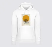 Immergetevi nella serena bellezza di "Golden Horizon Tree", una stampa digitale minimalista che cattura una profonda tranquillità. Questa straordinaria opera presenta una maestosa sfera giallo-dorata, che ricorda un sole o una luna potenti, e che fa da sfondo caldo a una tela bianco sporco, leggermente consumata.