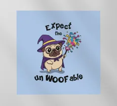 Un simpatico carlino vestito da mago lancia un'esplosione di magia colorata con la frase "Expect the unWOOFable". Questa opera d'arte fonde umorismo, fantasia e adorabili vibrazioni canine in un disegno divertente e magico. Perfetto per gli amanti dei carlini, i fan dei cani e tutti coloro che amano l'arte stravagante e geek.