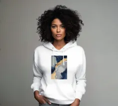 Un'armoniosa miscela astratta di blu profondi, creme morbide e ori scintillanti, con pennellate ampie ed espressive. La composizione irradia un senso di lusso sereno e di interazione fluida tra i colori.
