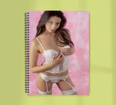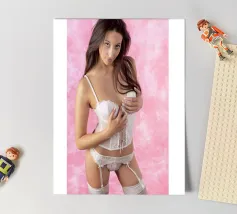Uno scatto glamour di una giovane donna in lingerie bianca.