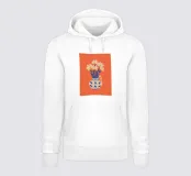 Un'affascinante natura morta di un bouquet di margherite bianche in un grazioso vaso a fantasia. La semplice bellezza dei fiori e il caldo sfondo arancione creano un'opera allegra e senza tempo.