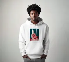 Questo dipinto raffigura una persona circondata da grandi papaveri rossi. La persona ha i capelli bianchi ed è rappresentata di profilo, creando un senso di tranquillità e di connessione con la natura.