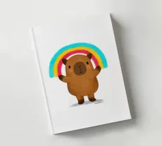 Simpatico disegno di Capibara con arcobaleno. Un'illustrazione molto carina e colorata per rendere più felice la vostra giornata.