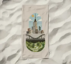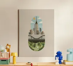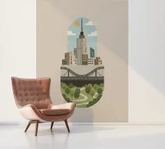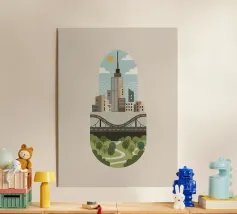 Questa illustrazione cattura la dualità della vita urbana moderna, fondendo senza soluzione di continuità il paesaggio urbano ad alta quota con la tranquillità della natura. Una vista stilizzata e compatta mostra imponenti grattacieli e infrastrutture di trasporto (strade, ponti) al di sopra di un vivace parco verde con sentieri serpeggianti e alberi rigogliosi. È una rappresentazione visiva della pianificazione urbana sostenibile e della necessaria coesistenza di sviluppo e spazi verdi in un unico ambiente coeso. Urbanistica, Paesaggio urbano, Architettura, Spazio verde, Sostenibilità, Parco, Ponte, Strade, Minimalista, Design piatto, Ecologico, Moderno, Natura
