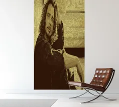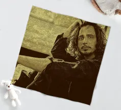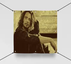 Appoggiato all'indietro con uno sguardo pensieroso, Chris Cornell si riposa sul bordo del silenzio. Un momento di sfida immobile, catturato tra suono e storia.