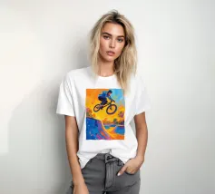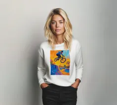 Ciclista BMX a metà trick in aria con stile artistico pittura fauvismo