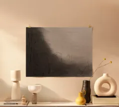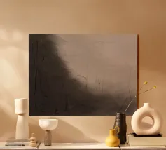Opera astratta originariamente commissionata dalla Washington University per la rivista LIGHT. Con tonalità di grigio e terra e una tonnellata di dettagli e segni distintivi. Questo pezzo morbido e sottile è splendido su stampe, abiti, accessori e oggetti per la casa. Fan del Wabi Sabi e minimalisti, questo è per voi.