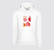 Una composizione astratta minimalista e giocosa di forme semplici e ritagliate in una tavolozza di rosa, rosso e crema. L'opera d'arte è leggera, allegra e ha un'atmosfera moderna e spontanea.