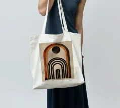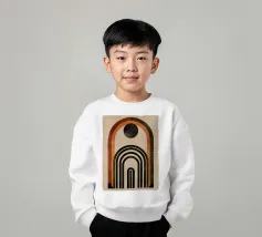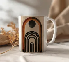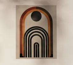 Questo design colpisce per l'armonia degli archi e per la palette di colori caldi e terrosi in marrone, nero e arancione. Le linee geometriche pulite e il sottile tocco vintage lo rendono un'attrazione senza tempo per qualsiasi casa moderna o nostalgica. Perfetto per l'arte da parete, i cuscini o gli accessori per la casa, per dare alla vostra stanza uno stile elegante e unico.