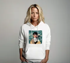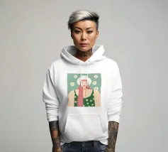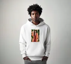Il dipinto raffigura una persona con capelli corti e rosa su uno sfondo di fiori di ciliegio. La persona indossa una camicia verde e la composizione complessiva emana un senso di crescita e di sicurezza.