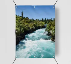 Fiume selvaggio attraverso la foresta - Fotografia naturalistica di acqua blu vibrante