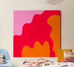 Elevate il vostro spazio con un'accattivante opera d'arte moderna caratterizzata da forme astratte nelle vivaci tonalità del rosso, del rosa e dell'arancione. Aggiungete un tocco di raffinatezza e vivacità al vostro arredamento con questo splendido pezzo. Perfetto per gli appassionati d'arte che cercano un'eleganza contemporanea.
