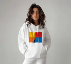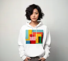Forme geometriche dai colori vivaci sono disposte in un motivo accattivante. La composizione presenta quadrati e rettangoli di vari colori, creando un gioioso impatto visivo.