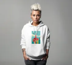 Questa immagine mostra un'interpretazione vivace e moderna dell'iconico edificio Kornhaus di Friburgo. Ideale per gli appassionati di architettura o per chiunque apprezzi l'arte unica ispirata alla città.