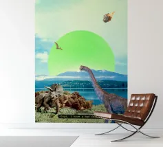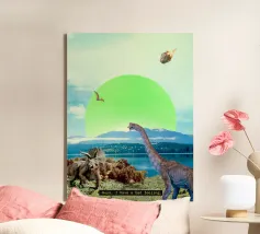 Dinosauri che vibrano sulla Terra, finché uno di loro non inizia ad avere una strana sensazione (sta arrivando un meteorite). Collage surreale e divertente di MsGonzalez.