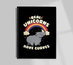 Un rinoceronte che cammina felice con un arcobaleno sullo sfondo, ornato dalla frase "I veri unicorni hanno le curve". Questo disegno con un tocco di umorismo esalta la bellezza così com'è, con le curve. Mostrate il vostro amore per i rinoceronti, gli unicorni e anche per il vostro corpo con questo grazioso disegno.