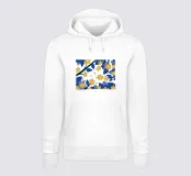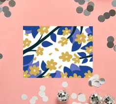 Un'illustrazione di fiori con uno stile di design piatto, utilizzando i colori giallo, blu e bianco. Questa illustrazione offre un aspetto moderno e minimalista.
