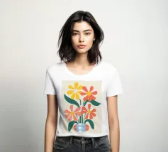 Un affascinante motivo floreale con grandi fiori colorati nei toni del giallo, dell'arancio e del rosa disposti in un elegante vaso. Questo disegno irradia leggerezza e gioia di vivere ed è ideale per portare un'atmosfera fresca ed estiva in casa. Perfetto per murales, cuscini, tazze e altri accessori per la casa. Che si tratti di un regalo o di abbellire le vostre pareti, questo motivo vi conquisterà con la sua moderna semplicità e la sua calda tavolozza di colori.