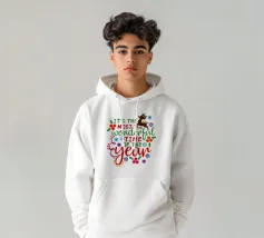 Immagini festive circondano la scritta "It's the Most Wonderful Time of the Year", con personaggi di pan di zenzero, fiocchi di neve e decorazioni a tema natalizio.