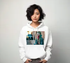 In un vicolo vibrante, Julian contrasta fortemente con il tumulto cromatico che lo circonda. La sua carnagione pallida e i suoi capelli quasi trasparenti giocano con gli schizzi di colore sullo sfondo. Ogni flash del fotografo rivela un dettaglio, un'emozione, catturando l'essenza eterea di Julian in questo caos visivo.