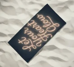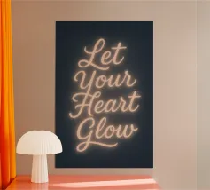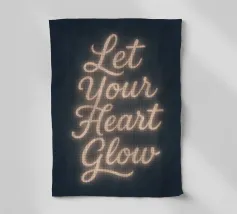 Un design tipografico natalizio caldo e sognante, caratterizzato da una scrittura a mano luminosa che irradia una luce soffusa su un profondo sfondo invernale. Semplice, moderno ed emotivamente edificante, ideale per gli amanti dell'arredamento natalizio minimalista con un tocco magico.
