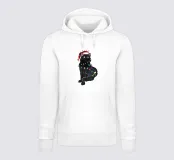 Adorabile gatto nero impigliato in luci natalizie colorate: un'illustrazione festiva e divertente per gli amanti dei gatti e dell'arredamento accogliente.