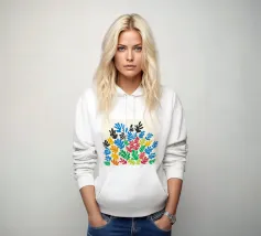 Una vibrante e gioiosa composizione astratta di foglie colorate e forme organiche nello stile dei ritagli di Henri Maraoui. La composizione è dinamica e piena di vita.