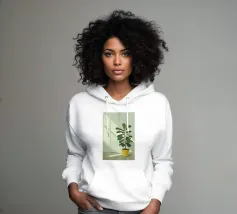 Una lussureggiante scena di giungla incornicia un grappolo d'uva viola, creando una natura morta unica e inaspettata che fonde il fogliame tropicale con la frutta del frutteto in una composizione vibrante.