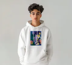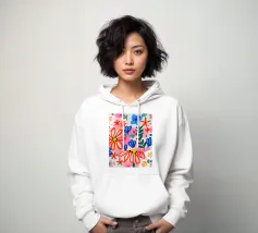 Una bella macchia di fiori selvatici stilizzati e stravaganti è illustrata in un affascinante stile ispirato all'arte popolare, con un delizioso mix di colori e forme che irradiano gioia e bellezza naturale.