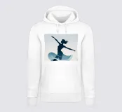 La leggiadra silhouette di una donna che scivola sul ghiaccio, con le sue forme che evocano equilibrio e pace. Le curve morbide e i toni freddi catturano la serenità del movimento invernale, un momento di libertà sospeso nel tempo.