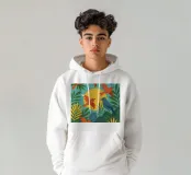 Immergetevi in un'atmosfera tropicale con questo poster Uccelli e sole turchese. Uccelli colorati volano sopra un sole splendente, in un contesto di piante rigogliose. Un poster vintage perfetto per dare un'atmosfera fresca ed esotica alla vostra casa.