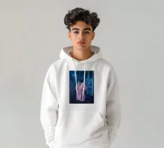 Un carlino siede in una vasca da bagno piena di bolle, circondato da piastrelle blu chiaro e da un rubinetto argentato. L'espressione del cane è allo stesso tempo carina e un po' triste mentre si fa il bagno.