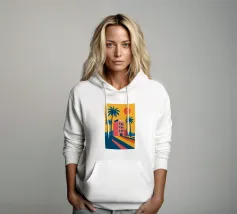 Una classica insegna retrò "MOTEL" risplende contro un cielo serale blu intenso, affiancata da palme in primo piano. L'immagine cattura un'atmosfera nostalgica e cinematografica che ricorda un classico viaggio americano in macchina.