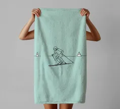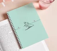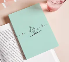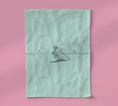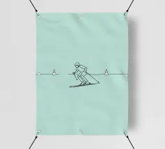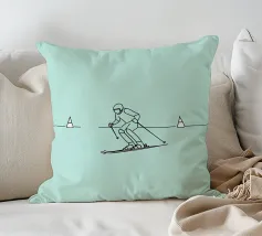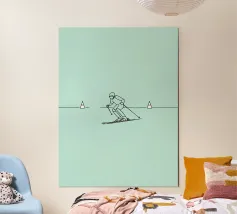 Line art minimalista di uno sciatore in movimento, che cattura velocità, agilità e avventura invernale. Perfetto per gli appassionati di sci e per l'arredamento degli sport alpini.