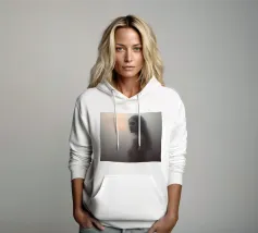 Una donna se ne sta tranquilla con le mani giunte davanti a sé, circondata da un bagliore etereo che ne evidenzia la silhouette nelle serene ore del crepuscolo.