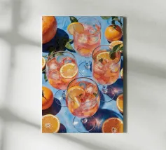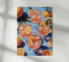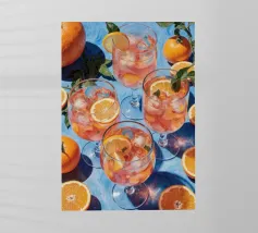 Un design giocoso e rinfrescante che celebra l'iconico cocktail italiano. Con toni arancioni brillanti e una spensierata atmosfera estiva, quest'opera d'arte porta nel vostro spazio lo spirito delle terrazze al tramonto, delle risate con gli amici e del tempo libero europeo. Perfetta per le pareti della cucina, per i bar di casa o per chiunque viva per i buoni drink e i bei momenti.