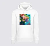 Una persona con cuffia e occhialini retrรฒ galleggia tranquillamente nell'acqua turchese, circondata da pesci colorati e piante acquatiche, creando una scena subacquea serena e onirica.