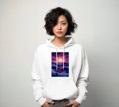 Un faro a strisce bianche e rosse si erge resistente tra onde tumultuose sotto un cielo drammatico. La scena emana un senso di forza e perseveranza contro i potenti elementi della natura.