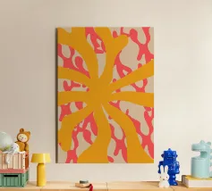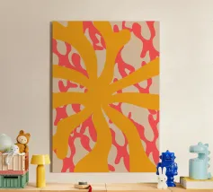 Ravvivate il vostro spazio con questa audace stampa astratta! "Yellow Summer" presenta forme organiche arancioni dinamiche che si irradiano verso l'esterno, su uno sfondo corallo vivace con morbide sfumature beige. Il design fluido e giocoso evoca il calore e l'energia delle giornate di sole, rendendolo un pezzo perfetto per interni moderni, spazi di lavoro creativi o qualsiasi stanza che abbia bisogno di un tocco di colore e vivacità.