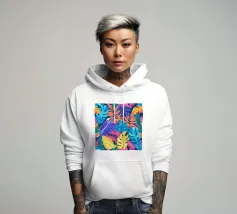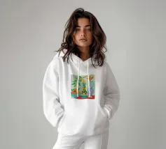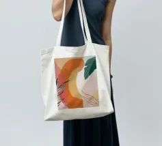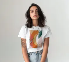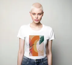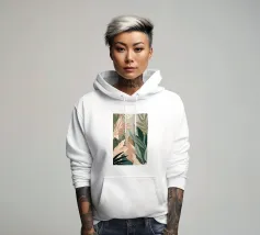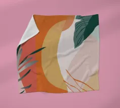 Un'elegante composizione di foglie botaniche stilizzate nei toni tenui dell'arancio, del verde e della terracotta, su uno sfondo rosa e beige per un'atmosfera moderna e terrena.