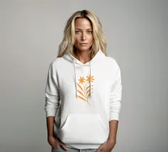 Un semplice disegno a linee marroni rappresenta una pianta con tre rami e piccole forme che ricordano foglie o boccioli. Lo stile minimalista e i colori neutri conferiscono un'atmosfera astratta.