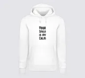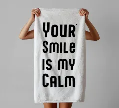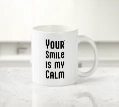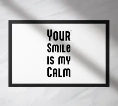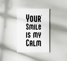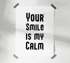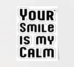 Il tuo sorriso è la mia calma. Espressione d'amore e di San Valentino. Tipografia in nero e bianco (trasparente). È possibile cambiare il colore dello sfondo. Poster tipografico minimalista.
