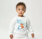 Le nostre felpe per neonati sono realizzate all'85% in cotone biologico ed etico e al 15% in poliestere riciclato.